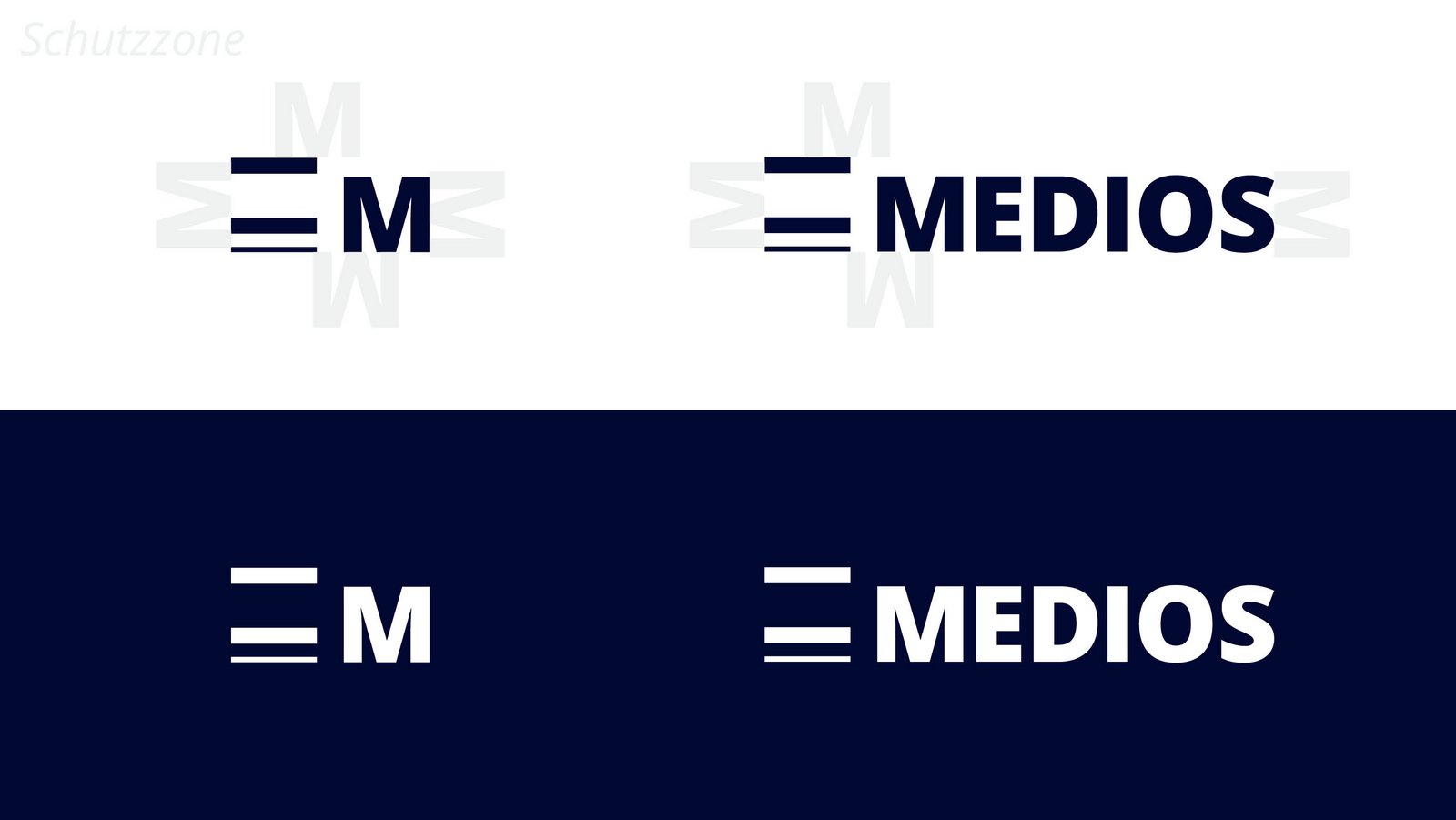 Our logo is available as a figurative mark with an "M" or as a figurative word mark in the Medios colors, night blue or black. White is intended as a negative variant.